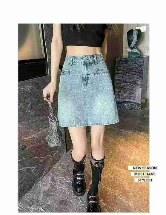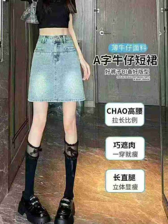 高腰牛仔短裙☕️50条全清9.9元,码数S 到XL,独立包装吊牌,拉夏贝尔浅色牛仔短裙女夏季2025新款高腰复古a字辣妹包臀半身裙