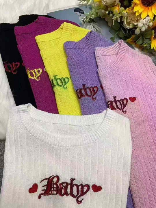 秋季新品纯欲甜辣短款字母刺绣针织长袖圆领套头毛衣,独立包装,均码面料柔软舒适弹力大,1700件左右,全清5.9元超低价秒杀!分货加一!