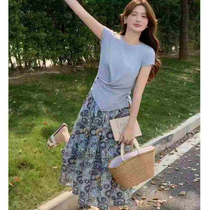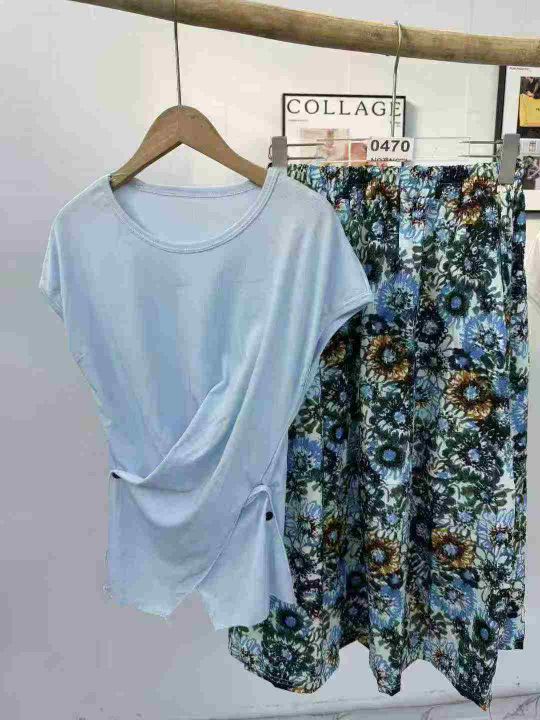 时尚休闲套装女新款夏装穿搭一整套洋气短袖T恤半身裙两件套,码数S-XL,数量3200套,独立包装,货品干净漂亮有质感。