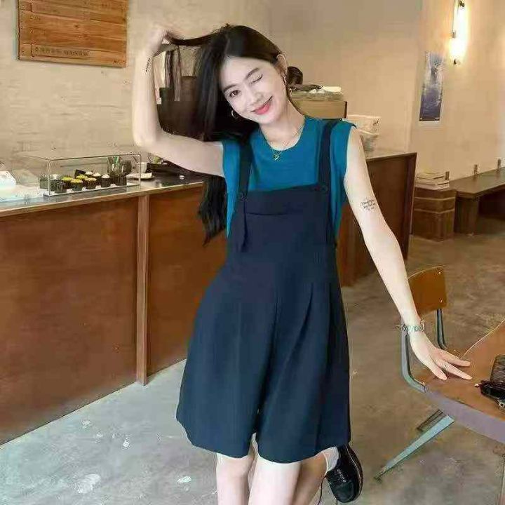 夏季新款学院风冰丝顺滑减龄网红休闲背带西装短裤,独...