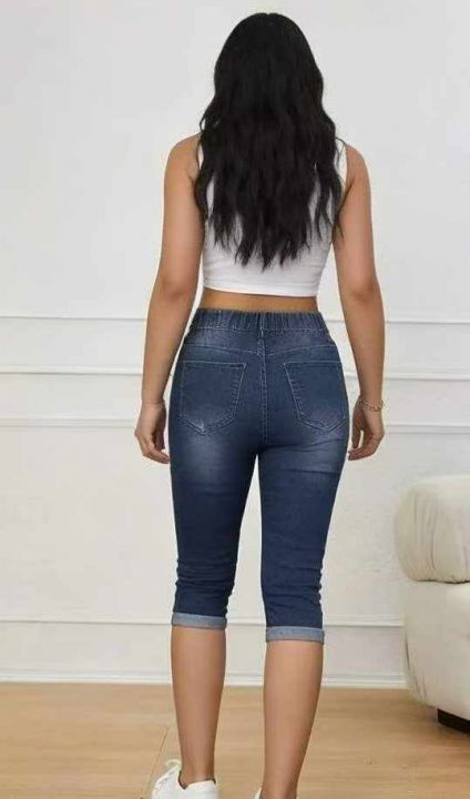 夏季新款品牌外贸原单美式高弹力破洞牛仔中裤,独立包...
