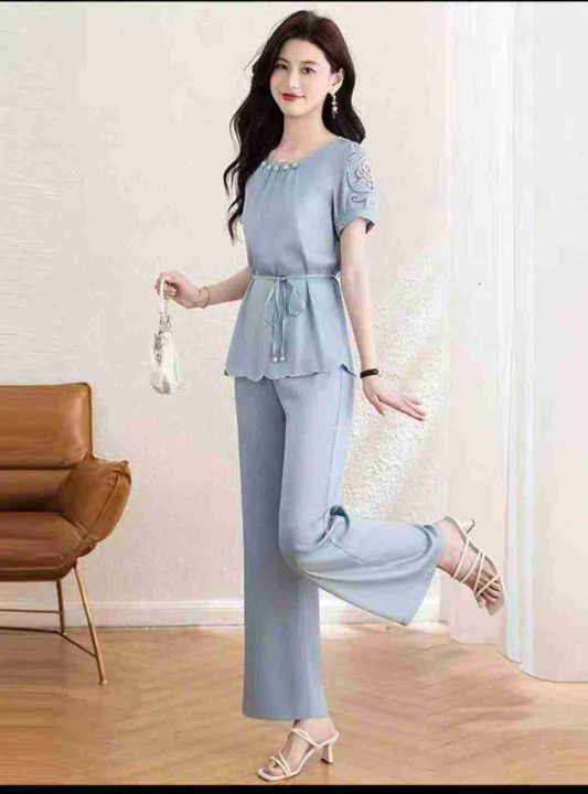 女士冰丝缎面短袖套装,单款单色 质量好可进实体,数...