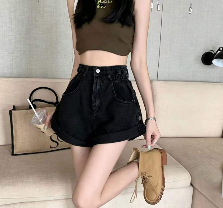 卷边牛仔短裤女夏季松紧腰阔腿高腰宽松a字梨形身材裤子25条全清9.8元,码数...