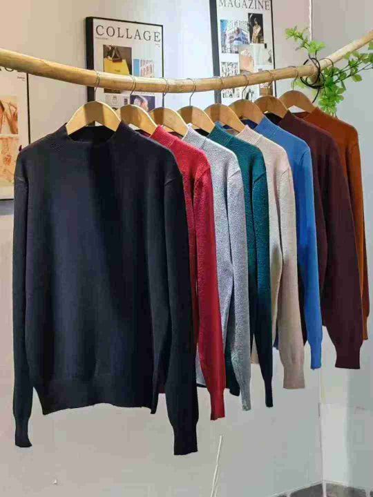 A063-01,数量1185件,码数S一L,全部5件一包装,单款多色,主色(红色,黑色,绿色,灰色,卡其色),仿羊毛面料,分货➕1,面料柔软,厚实,高弹力,半高领打底毛衣