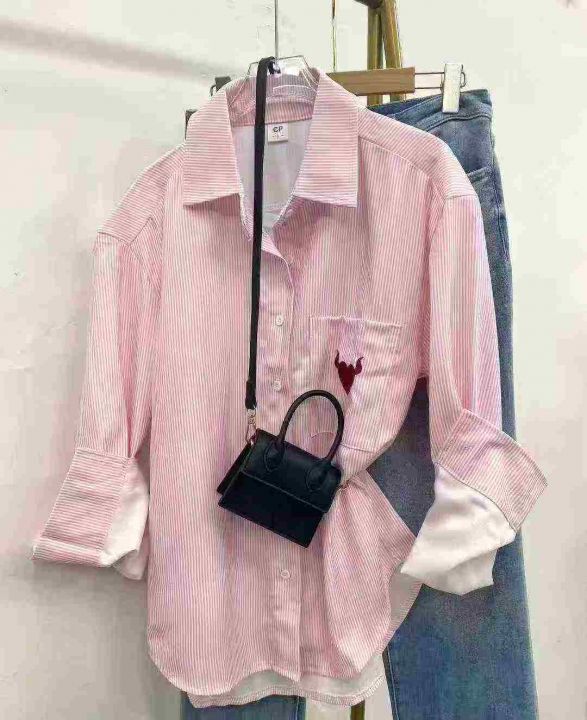 休闲条纹衬衫73件7.8,图片三个整款,字母图案刺绣/印...