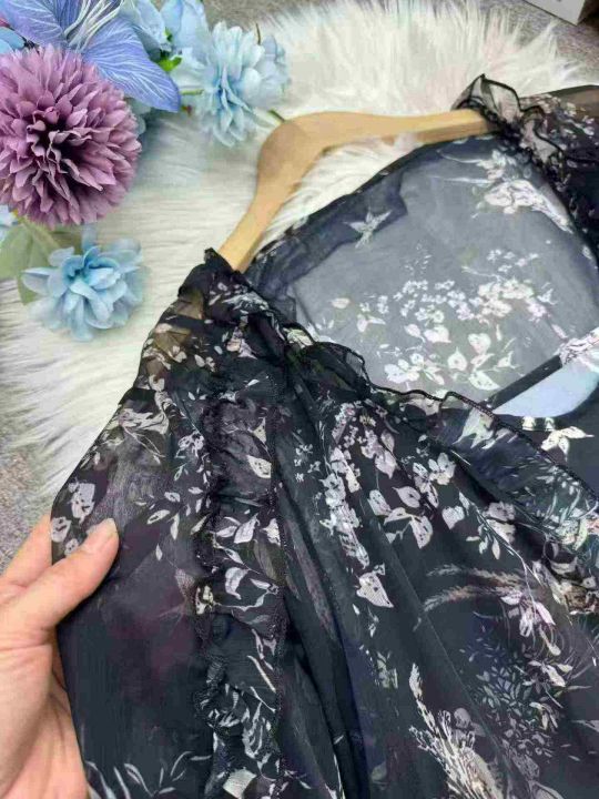 黑色雪纺碎花吊带两件套连衣裙数量:86条 码数:S-XL,独立包装(货号319#25)