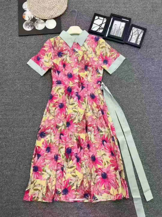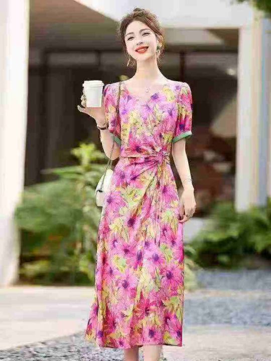 ☕️网红碎花连衣裙女夏季新款高端气质遮肚显瘦高级感长裙子120条全清13.8元,码数S到XL,独立包装。全部配腰带~