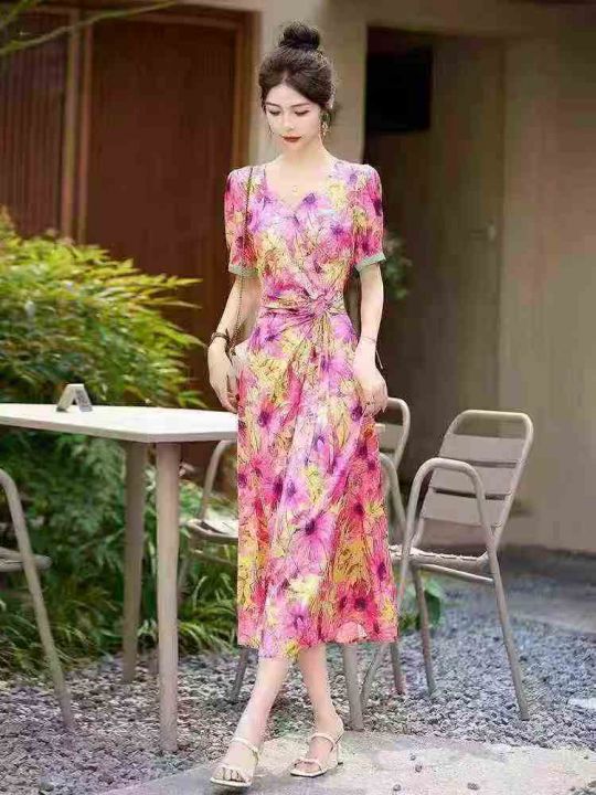 ☕️网红碎花连衣裙女夏季新款高端气质遮肚显瘦高级感长裙子120条全清13.8元,码数S到XL,独立包装。全部配腰带~