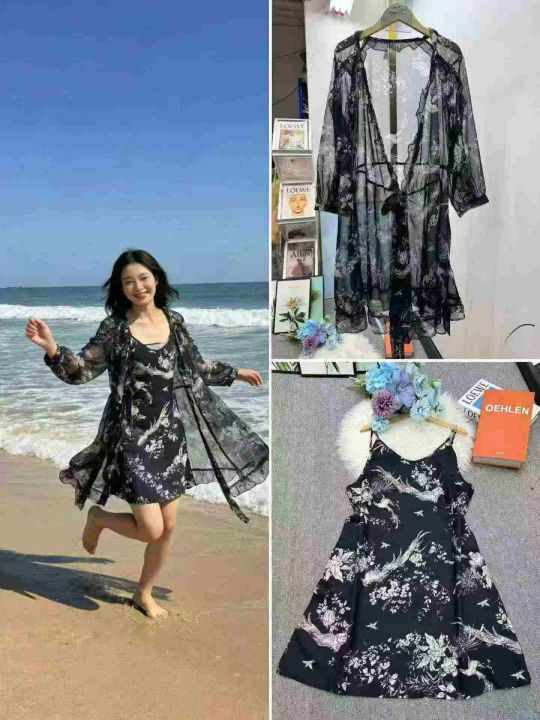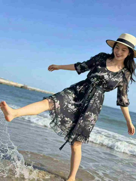 黑色雪纺碎花吊带两件套连衣裙数量:86条 码数:S-XL,独立包装(货号319#25)