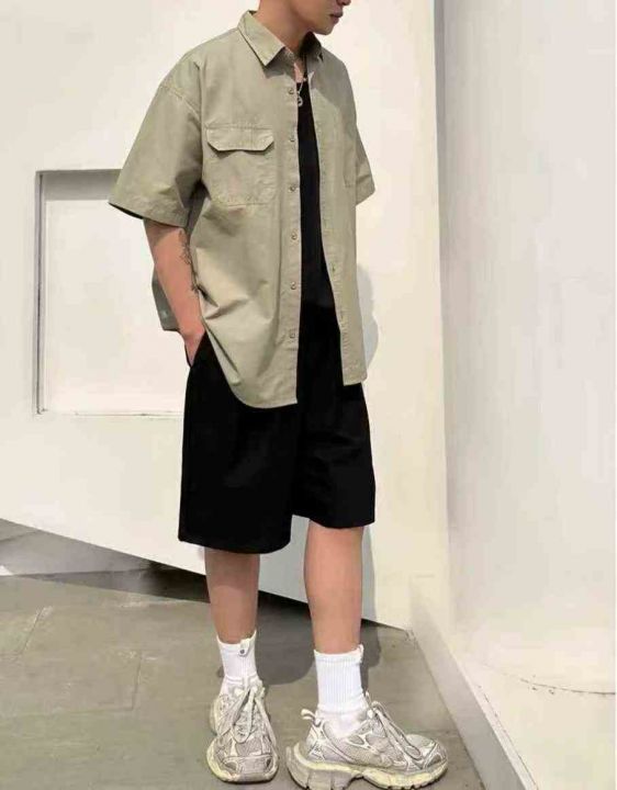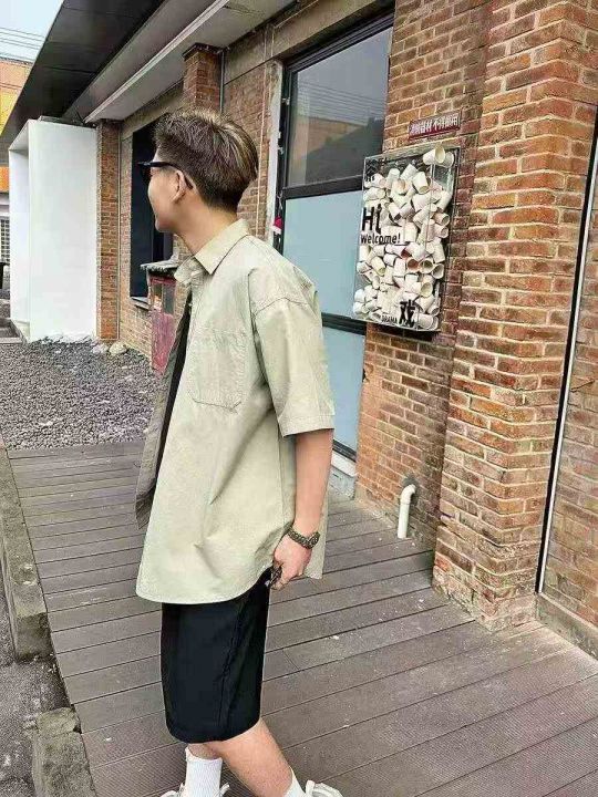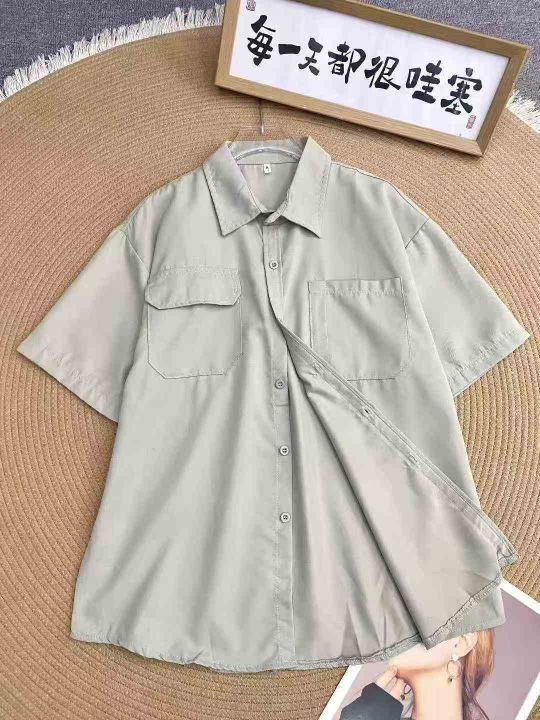 复古宽松休闲短袖衬衫206件7.9,不对称口袋设计,码数...