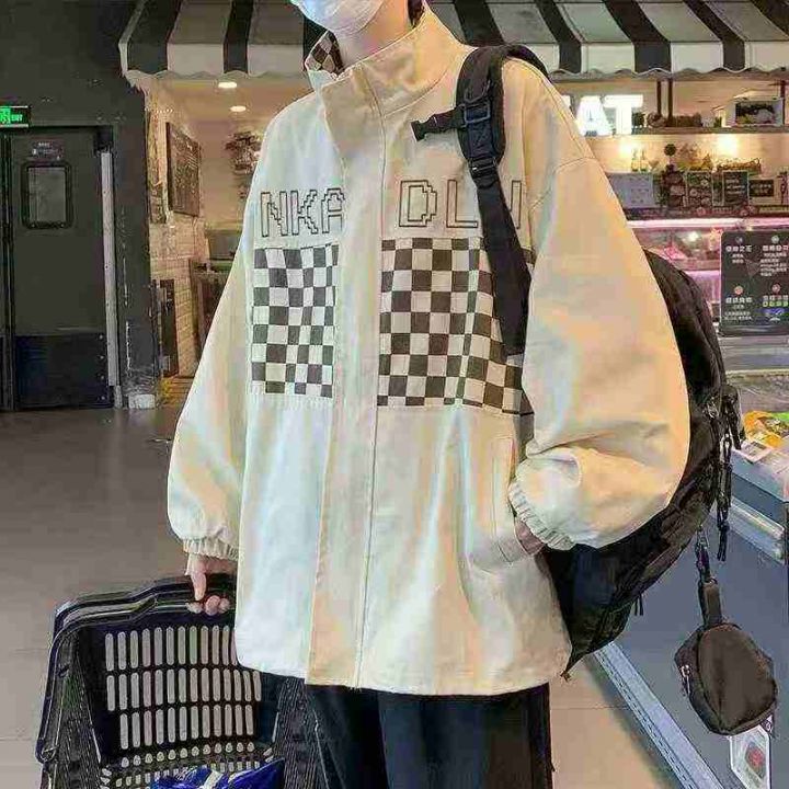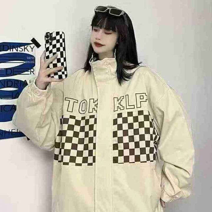 全清12.8大版型宽松外套夹克,男女同款拼色格子外套,...