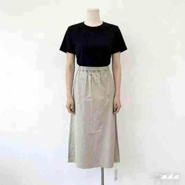 韩系新款复古高腰双口袋工装半身裙绑带松紧宽松A字裙休闲半身裙,高品质尼龙锦纶面料,独立包装