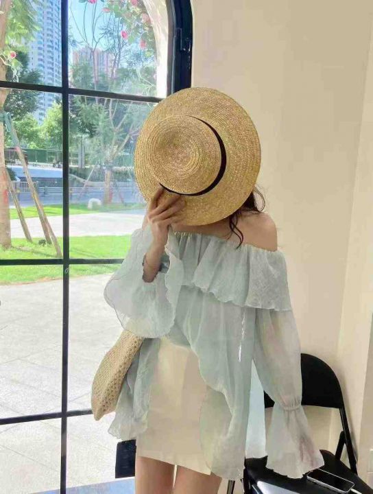 幸运儿家大档口新品✨ 纯欲仙女风一字肩小衫双层荷叶...