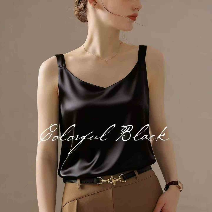 全清价4.6元夏季时尚百搭V领吊带背心外穿真丝缎面内搭...