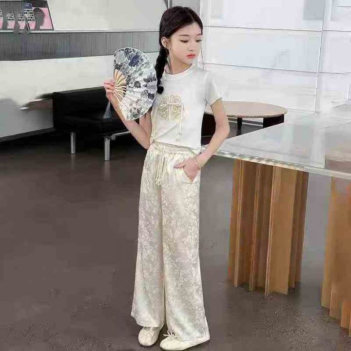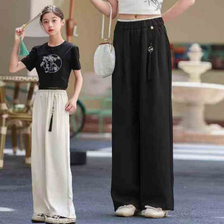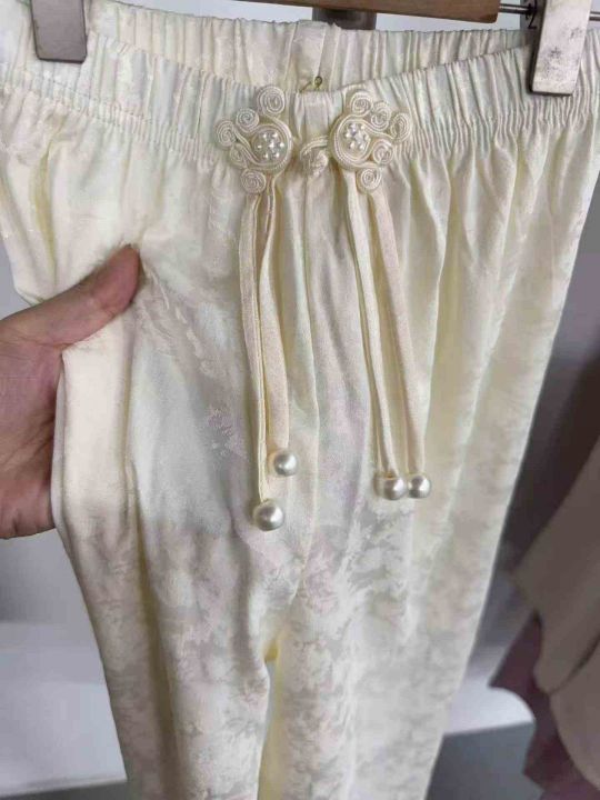女童国风裤醋酸面料,手感丝滑有垂感