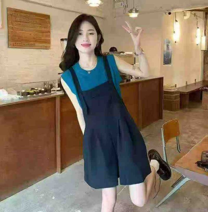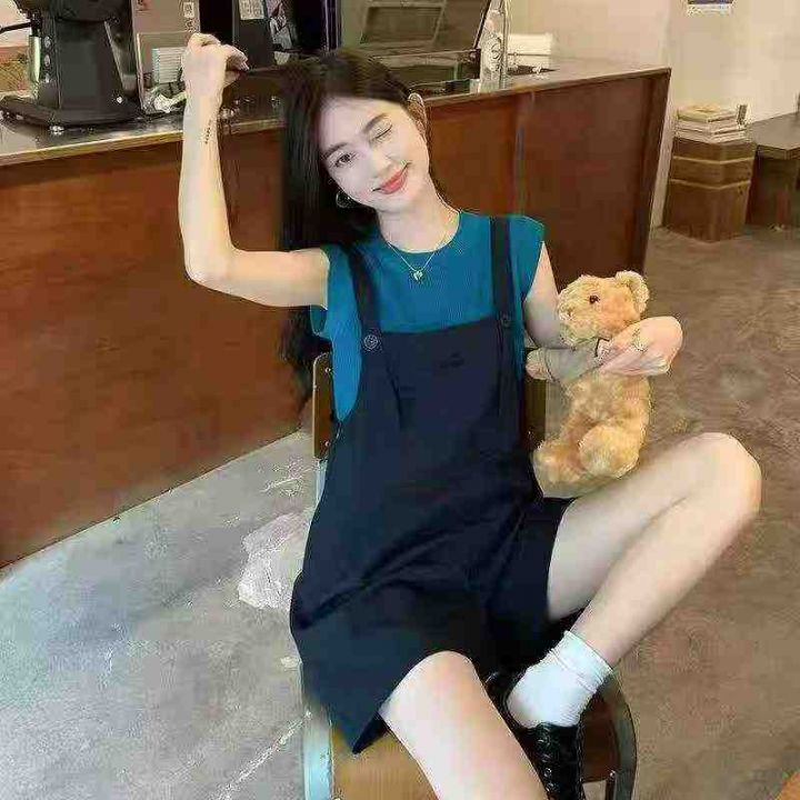 夏季新款学院风冰丝顺滑减龄网红休闲背带西装短裤,独...