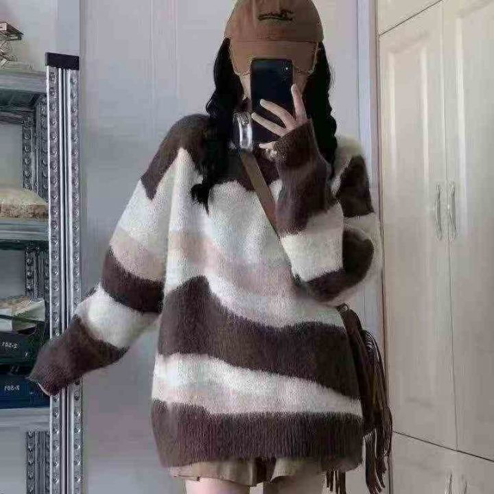 9. 9 清147件韩系复古秋冬季宽松慵懒风温柔针织上衣,...