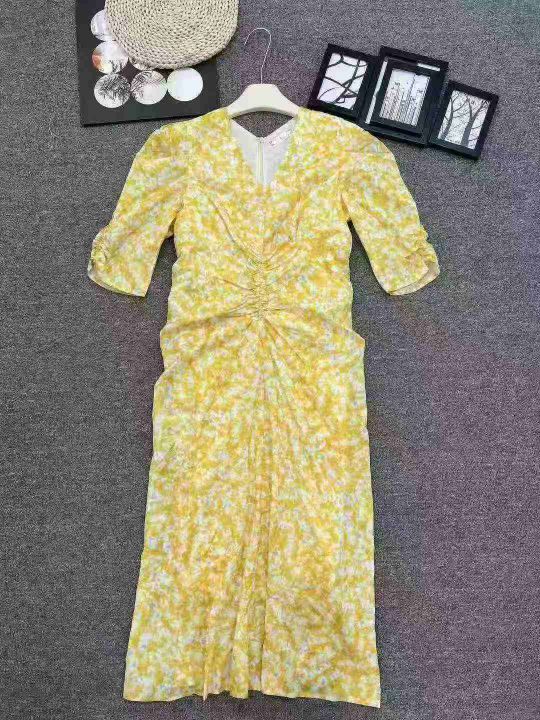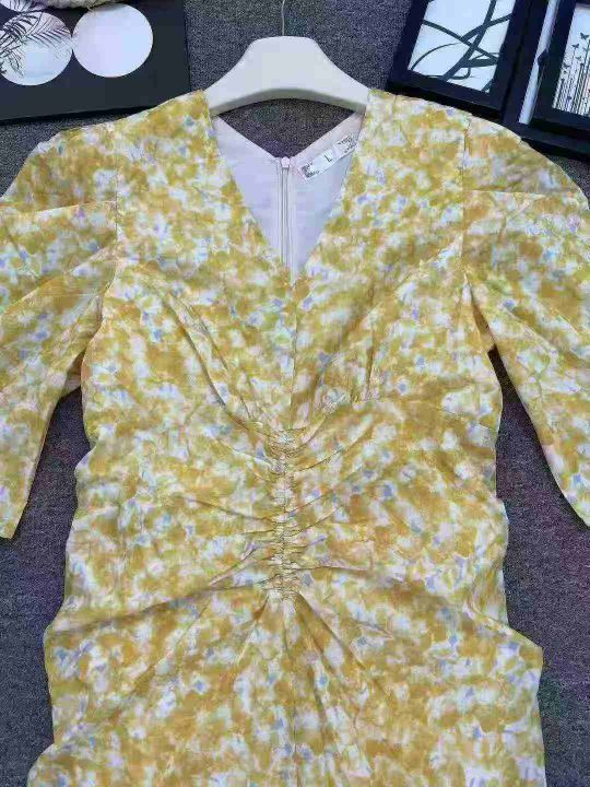 ☕️整款连衣裙茶歇法式黄色V领碎花连衣裙女夏气质优...