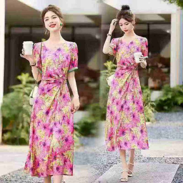 ☕️网红碎花连衣裙女夏季新款高端气质遮肚显瘦高级感长裙子120条全清13.8元,码数S到XL,独立包装。全部配腰带~