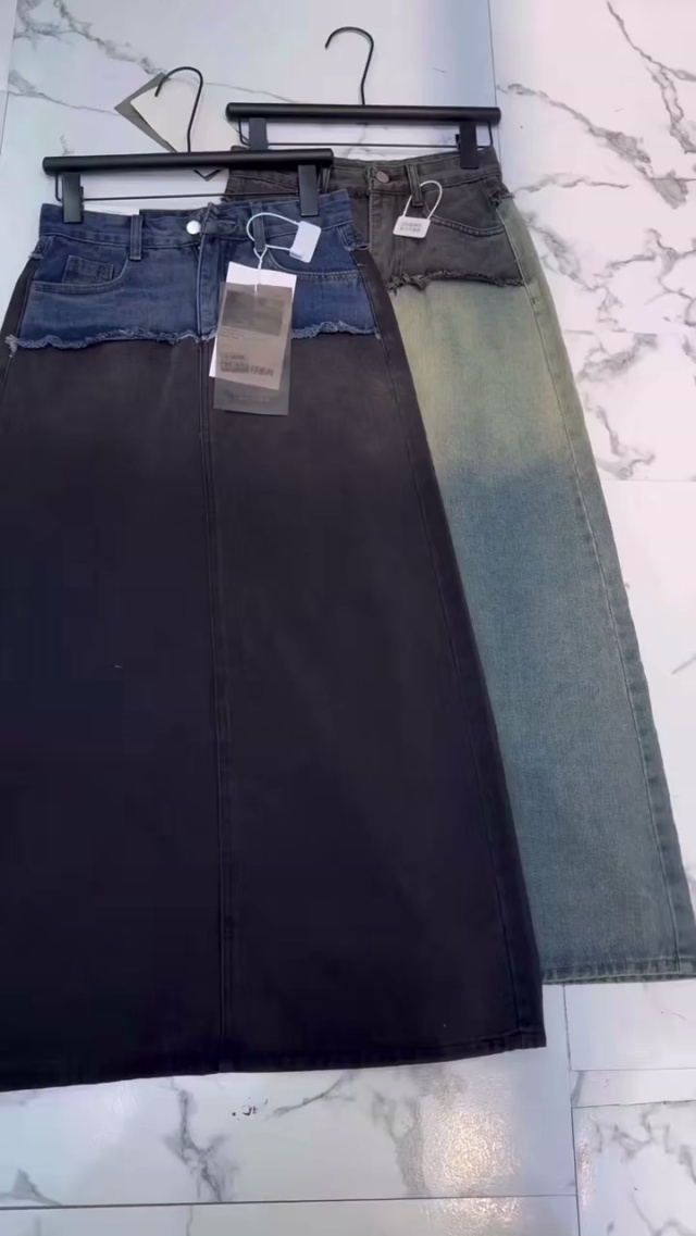 18设计感渐变色高腰后开叉小众牛仔A字牛仔半身长裙,品质好,总共200多件,...