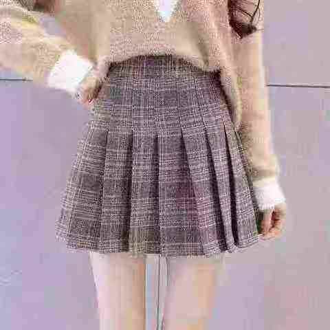 复古撞色设计感格纹毛呢百褶裙,数量79件,蓝格为主,码数2XL-4...