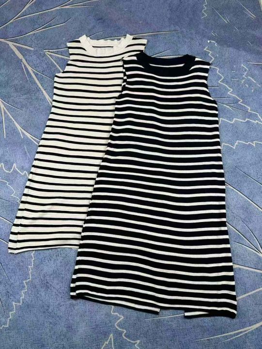 春夏季新款法式无袖气质显瘦长裙条纹开叉针织背心连衣裙,大货主要杏色为主,独立包装,390件,清9.5
