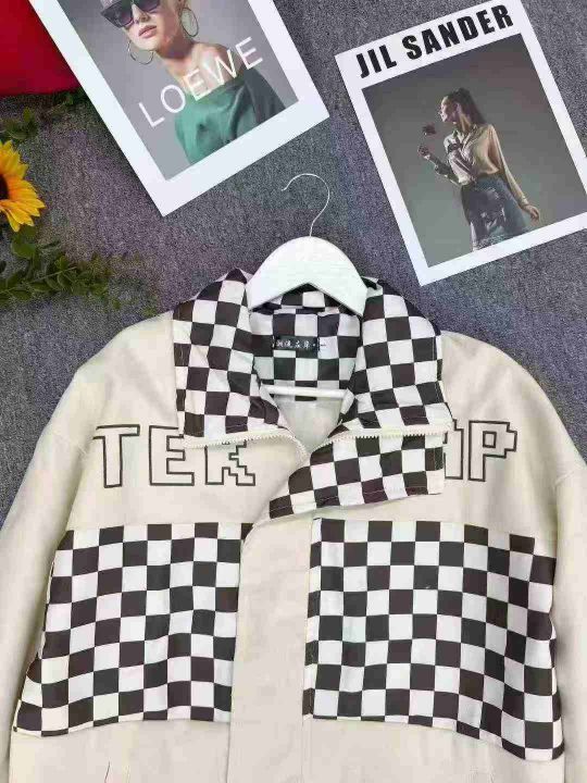 全清12.8大版型宽松外套夹克,男女同款拼色格子外套,...