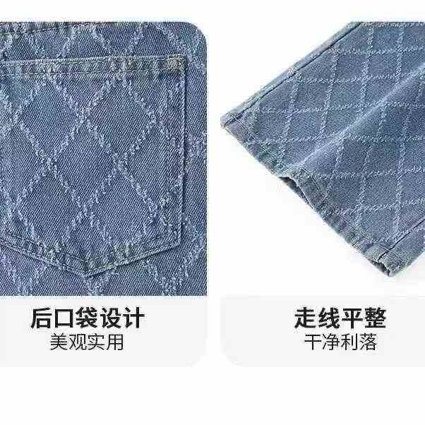 新款菱格设计感高腰牛仔裤女宽松显瘦百搭直筒阔腿长裤,独立包装,S -xL码,2 6 O件左右,全清12.8