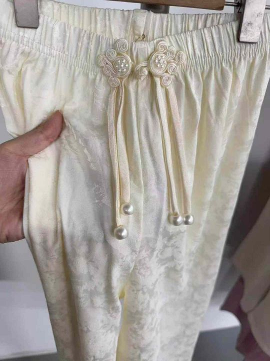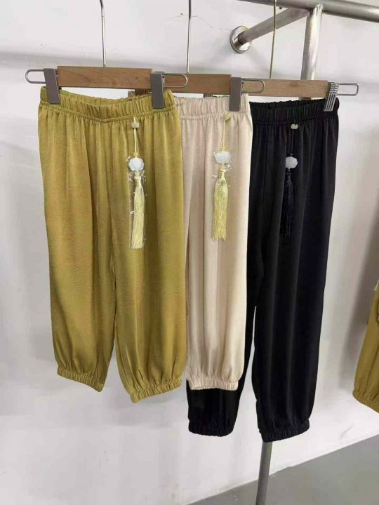 女童国风裤醋酸面料,手感丝滑有垂感