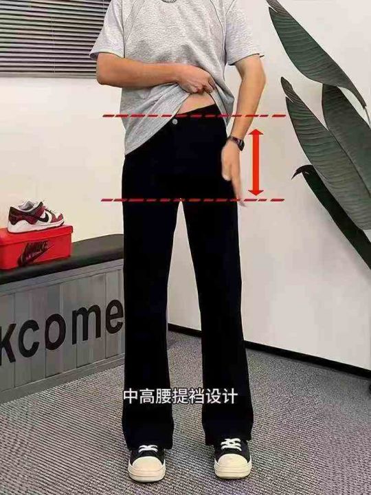 黑色柳叶弯刀牛仔裤男美式高街弹力直筒裤子100件,独...