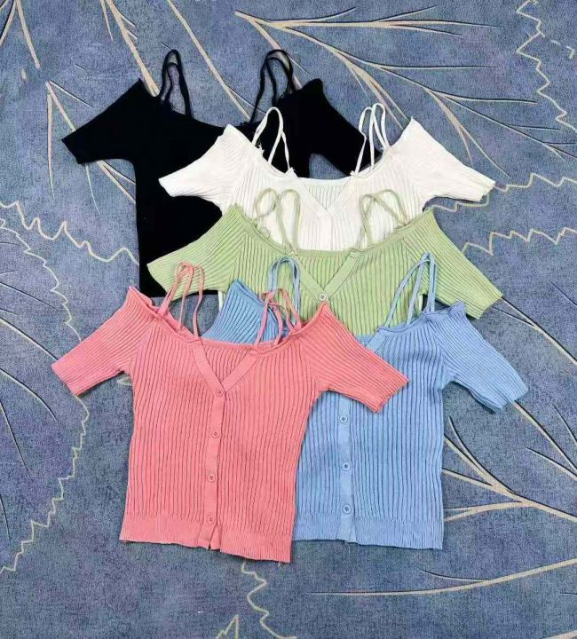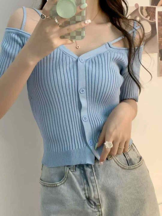 法式一字肩v领短袖夏纯欲冰丝针织吊带露肩短款冰丝上衣,独立包装,340件,清5.8,分➕1
