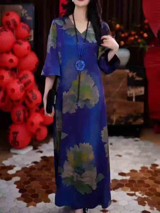 法式高级感印花连衣裙2026夏季新款七分袖裙显瘦通勤气质,图片款,图片色,...