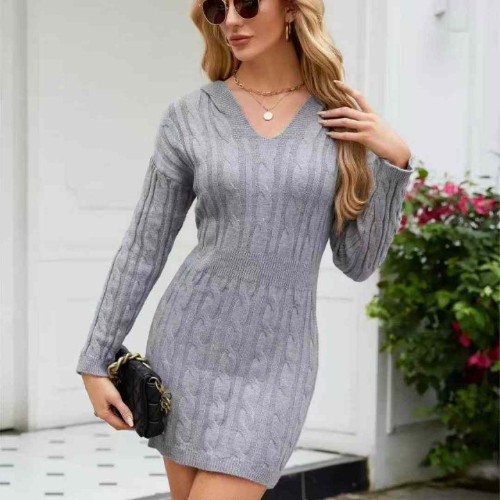 欧美风长袖中长款针织包臀气质通勤单麻花连衣裙,独立包装,85件,清7.8