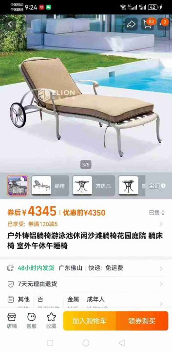 高端庭院室外躺椅,午休太合适了,还剩两三个,260元...
