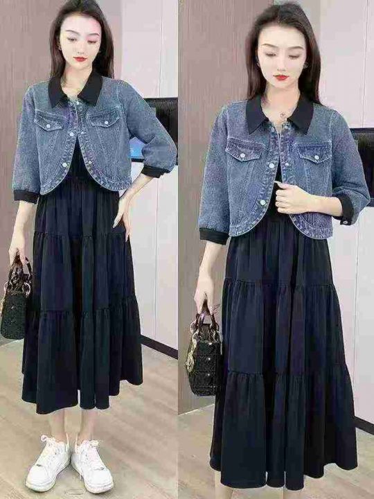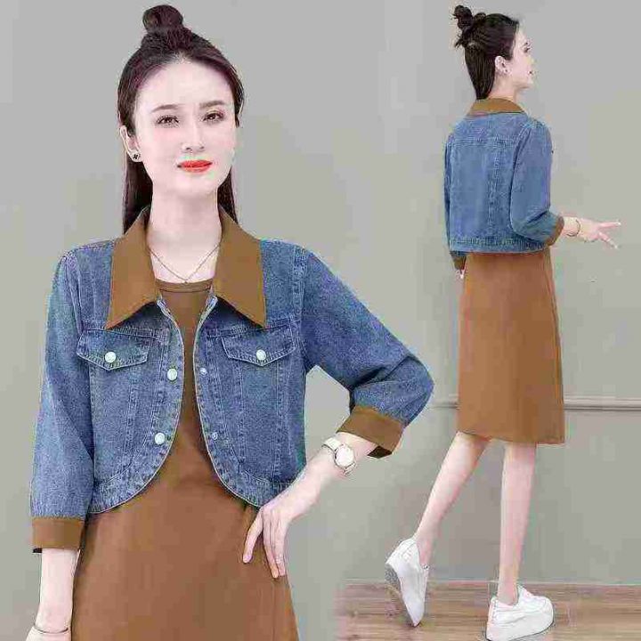 水洗牛仔+撞色翻领袖口,七分袖显瘦款