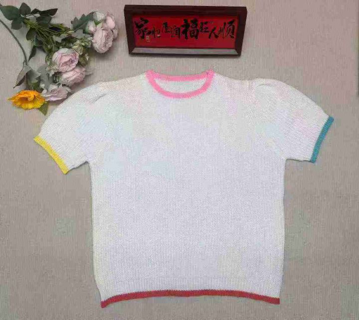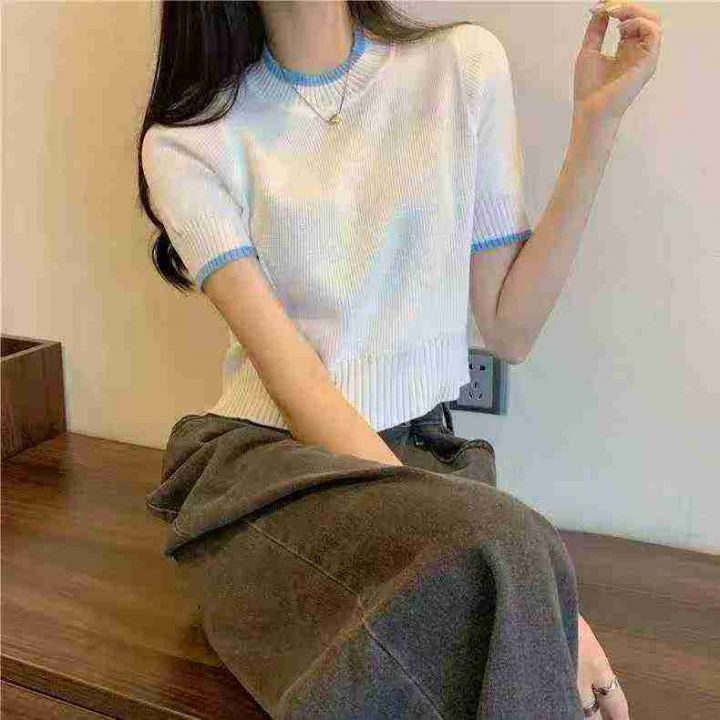 洋气甜辣撞色针织短款T恤短袖·单款单色40件独立包装...