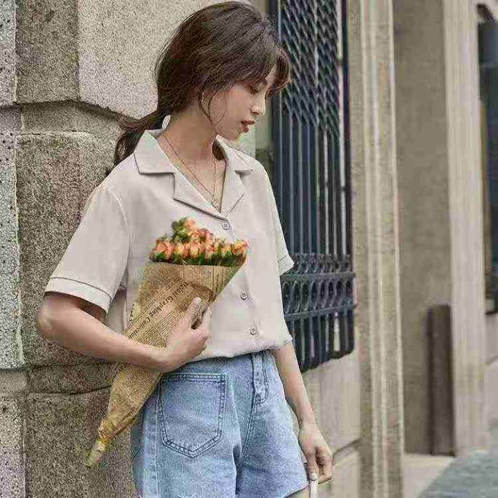 韩版法式女款西装领短袖衬衫·单款单色1-4码60件独立...