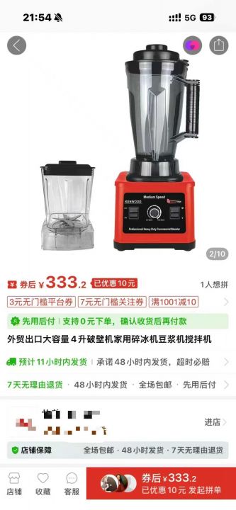 120台,4升商用双杯外贸破壁机,220V欧规...