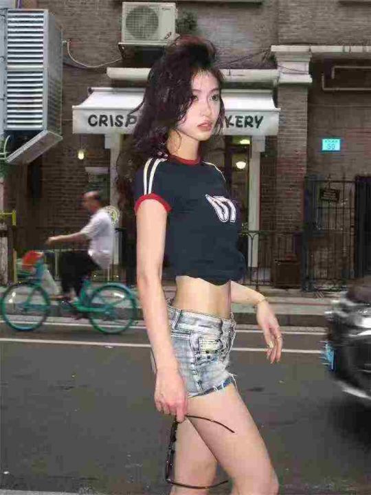 复古插肩撞色两条杠短袖t恤女装夏季辣妹修身正肩设计感小众上衣,数量260件,码数1-6码,独立包装,全清3.8元