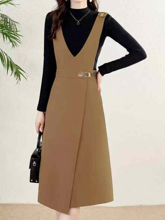 捡漏款,春季新款复古时尚宽松大版西装背带连衣裙,独...