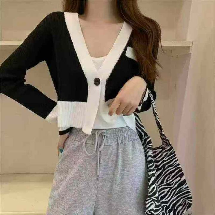 春秋新款V领拼色韩版小香风一粒扣针织毛衣开衫,独立包装,均码面料软糯舒适弹力大,735件,全清5.9元超低价秒杀!分货加一!
