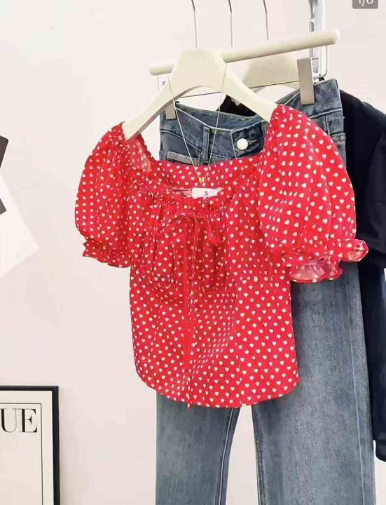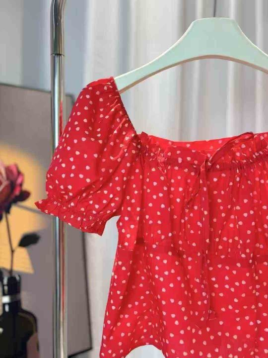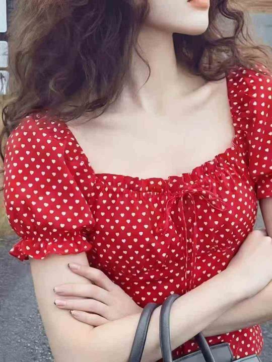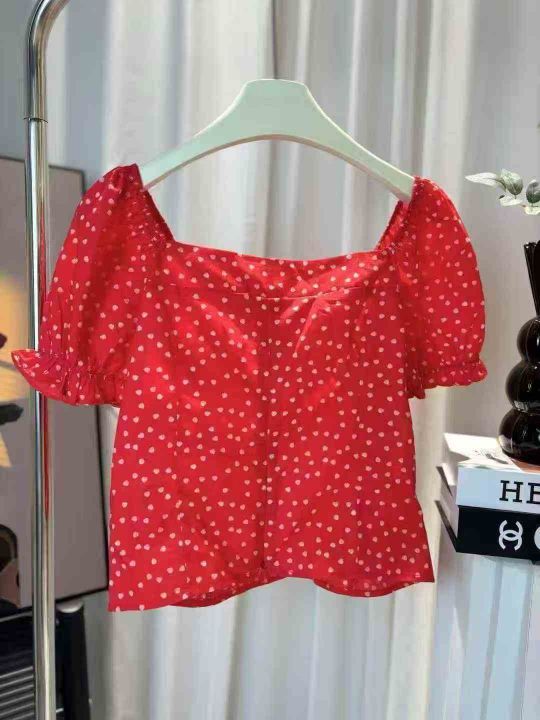 80件左右春季法式气质短款衬衣女装超好看2026年新款红色爱心波点衬衫上衣,尺码S-XL,独立包装,后面隐形拉链,福利秒杀价5.9 不分货