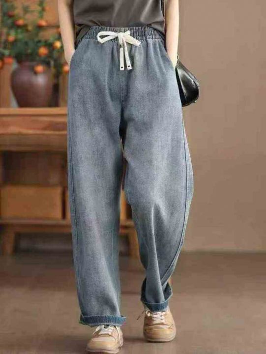 复古松紧带水洗牛子裤180条,全清13.8元,码数XL到XXXL,正品独立包装,每条有吊牌,2026新款春秋季直筒牛仔裤男士松紧腰宽松美式潮牌阔腿高街长裤子