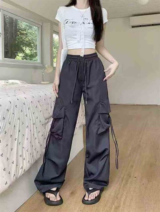 阔腿工装长裤女 400条,全清9.8元,分货10.8元,正品独立包装,两个色,码数:S到XL,高腰垂感阔腿裤女春夏季胖mm显瘦宽松降落伞美式速干工装裤子