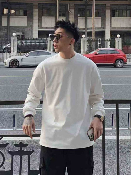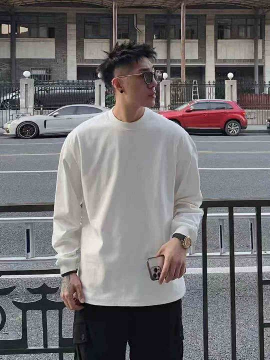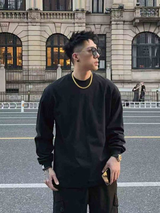 15300g重磅双纱纯棉男长袖T恤痞帅打底内搭春秋小领口...