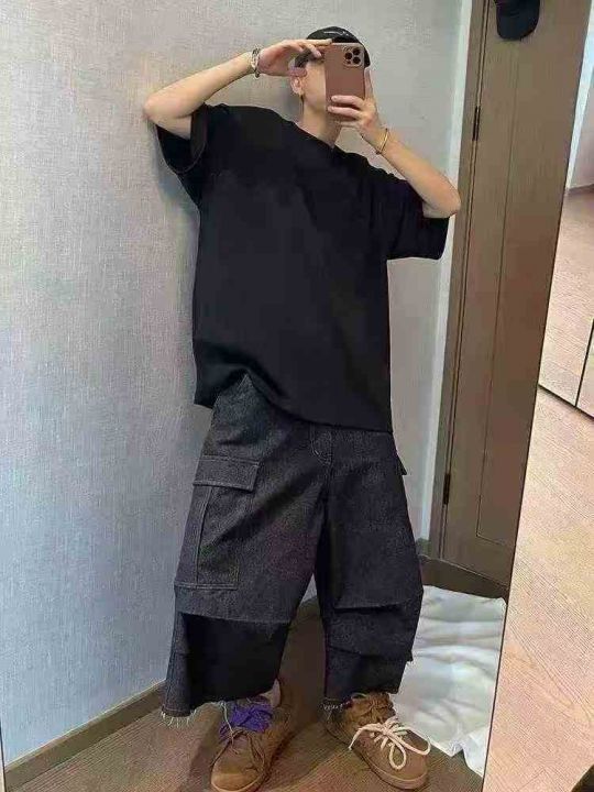 美式大码直筒裤子男春夏季华夫格宽松高街大码抽绳束脚阔腿休闲裤,整款3色...