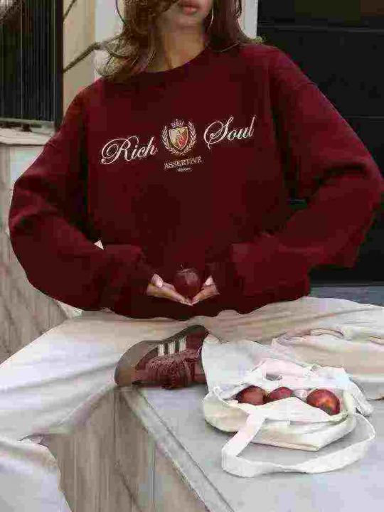 欧美风卫衣女秋冬婴儿绒加厚款宽松百搭套头(后领包边...
