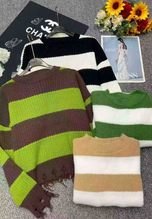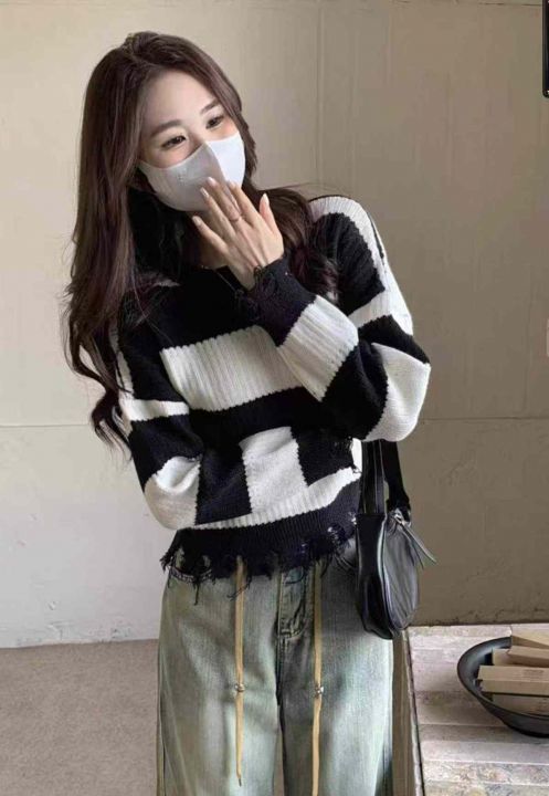 捡漏款,春秋新款网红复古撞色条纹圆领套头毛衣,2款...