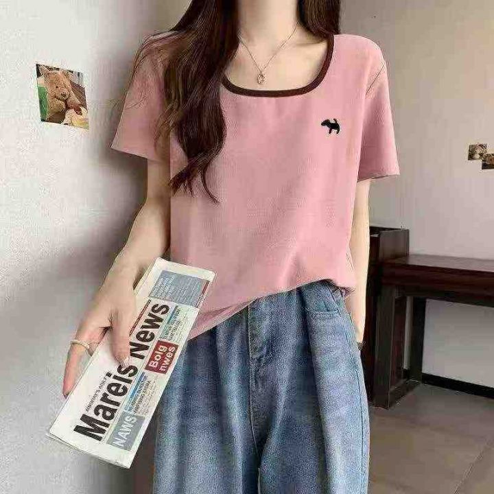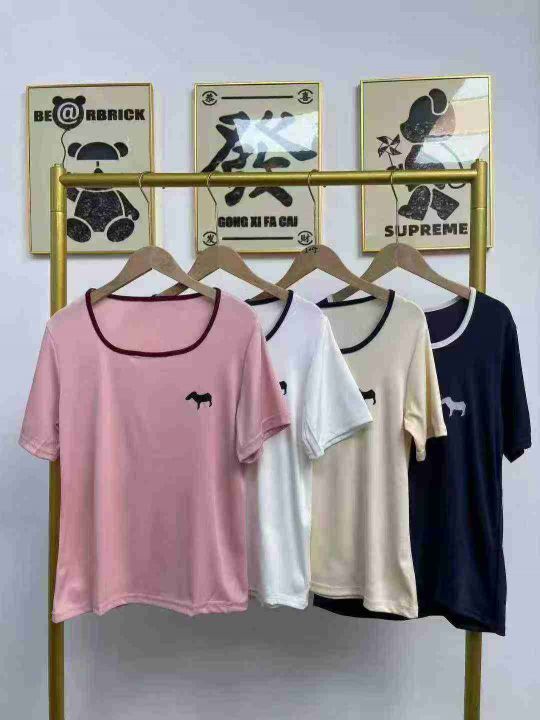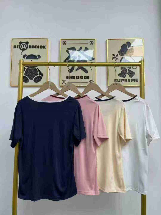 天猫在售款4000件高品质螺纹冰丝夏季宽松法式方领T恤,面料柔软高弹力,单款四色,S-3XL,独立包装