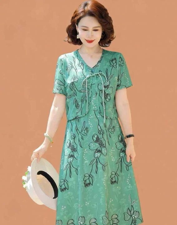 夏季新款网红流行爆款高端洋气妈妈假两件套旗袍连衣裙...